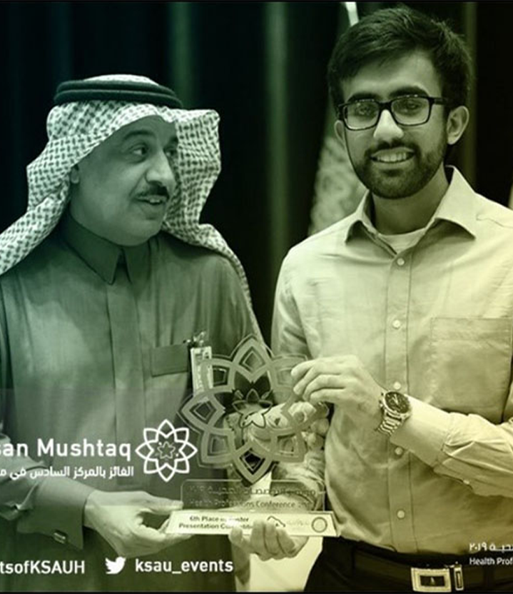 Dr. Ali Hassan Mushtaq is a 9th batch alumnus from Alfaisal University, currently in his intern year. He has been involved in extensive research,